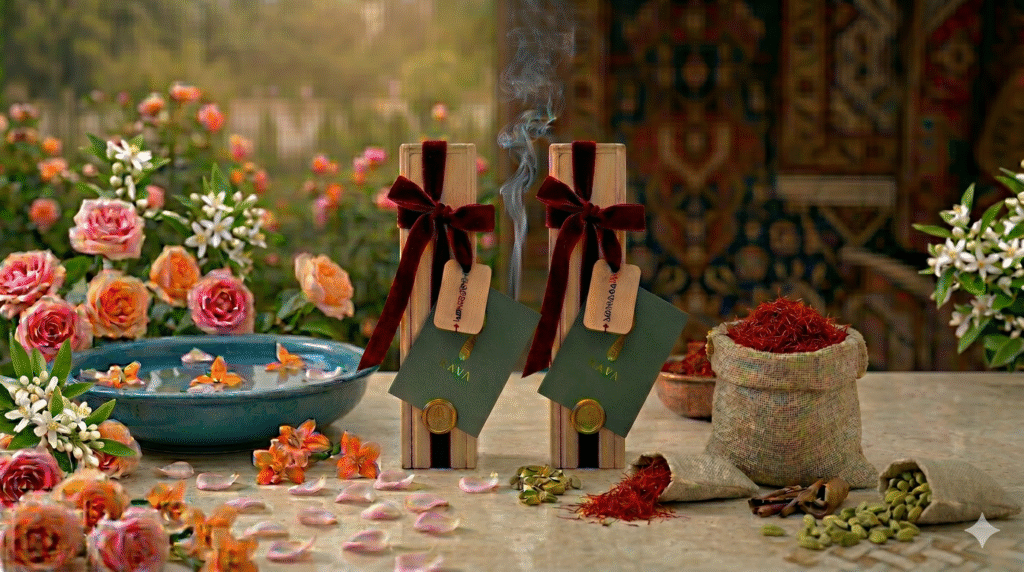 NOWBAHAR (The Spirit of Shiraz): Inspired by the light of dawn in the gardens of Shiraz. This blend is light and airy, designed to clear the air and lift the weight from your shoulders. It is like opening a window to a Persian spring morning.